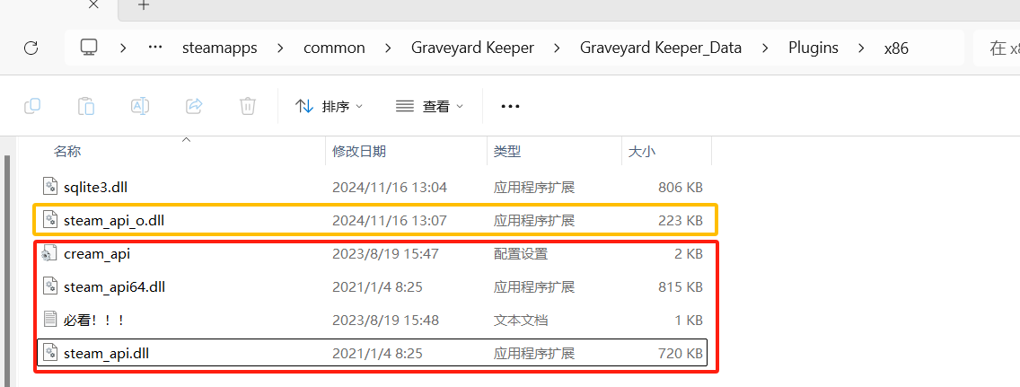苍穹@苍穹 炼气期lv0 24年11月16日 后面游戏群中大佬帮忙解决了 解决步骤如下: 1.在游戏根目录搜索steam_api.dll 2.steam_api.dll 改名为:steam_api_o.dll 3.解压压缩包文件放至steam_api.dll位置文件夹处即可 黄框为改名内容 红框为压缩包解压后文件内容 以上步骤尽量在关闭防火墙后操作,避免文件被删除 特别感谢QQ群中的@Unus @赞助方式开通网站会员+充值积分 两位大佬! 拜谢!!!