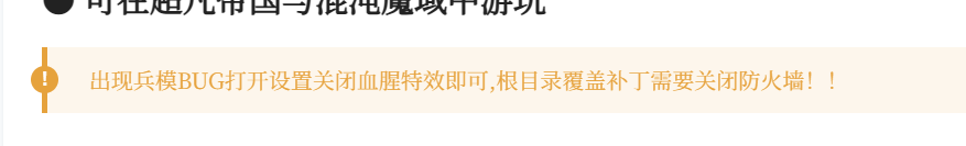 出现兵模BUG打开设置关闭血腥特效即可,根目录覆盖补丁需要关闭防火墙!!DLC不是跟着版本走,只要DLC内容不改动就不需要更新