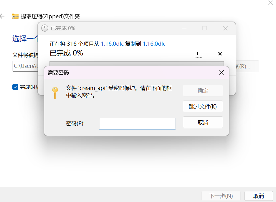你点下载的时候不就有弹出密码么,自动选择无视么