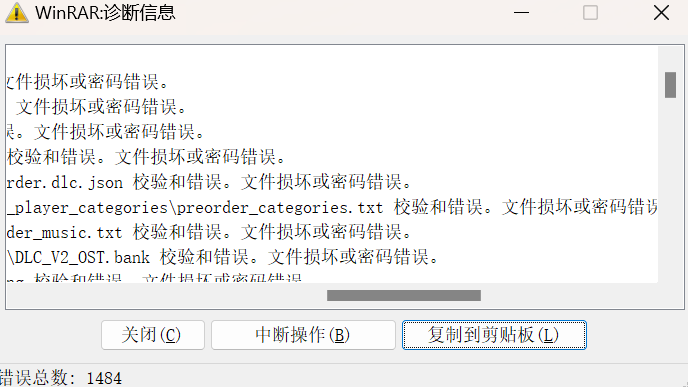 ! E:SteamLibrarysteamappscommonVictoria 31.9.0整合DLC补丁.zipx: 加密的文件 E:SteamLibrarysteamappscommonVictoria 31.9.0整合DLC补丁gamedlcdlc004_voice_of_the_peoplegfxloadingscreensvotp_victoria3_load_1.dds 里发生校验和错误。损坏的文件或错误的密码。