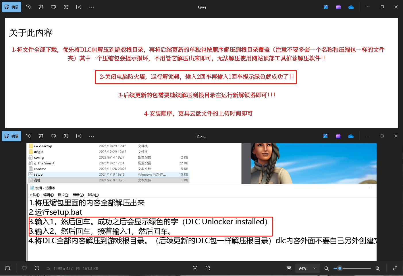 1-将文件全部下载,优先将DLC包解压到游戏根目录,再将后续更新的单独包按顺序解压到根目录覆盖(注意不要多套一个名称和压缩包一样的文件夹)其中一个压缩包会提示损坏,不用管它解压出来即可,无法解压使用网站顶部工具推荐解压软件!!