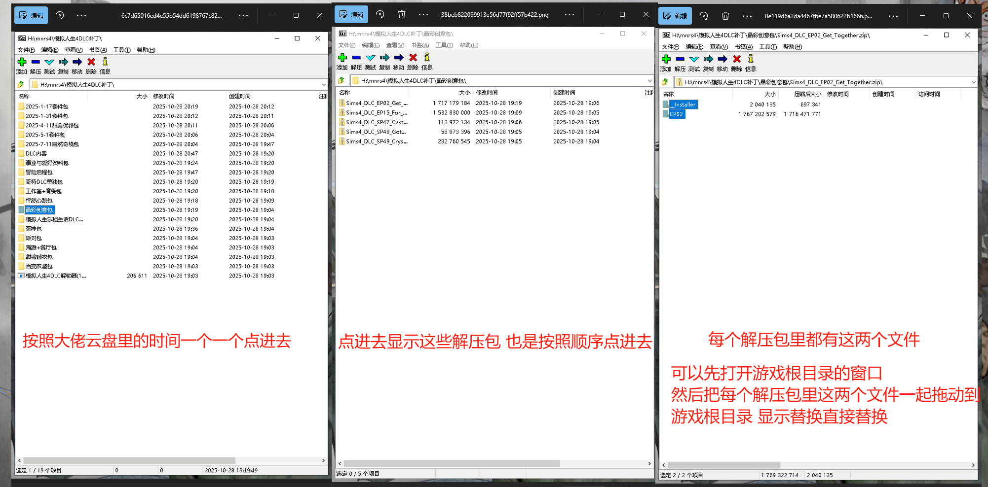 3.再把那些单独包按照大佬的云盘里的时间一个一个解压到游戏根目录(有详细图解)
